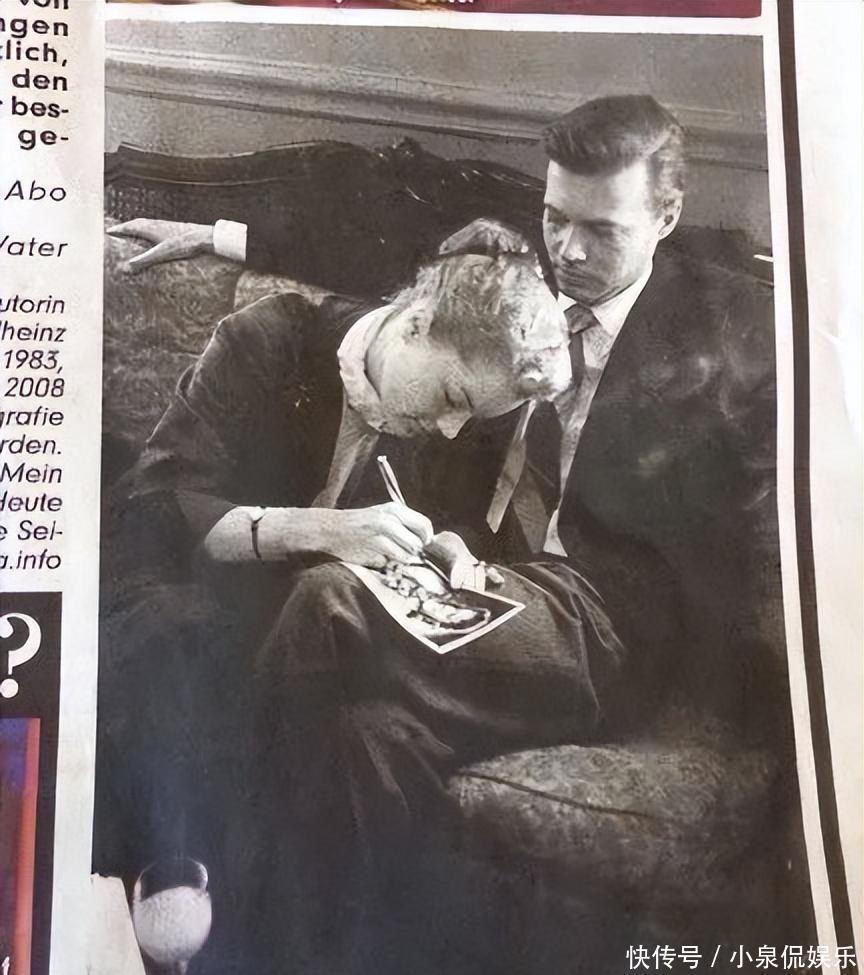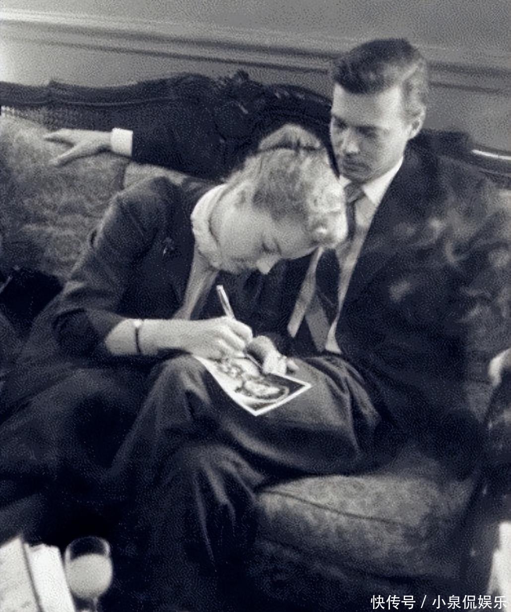 1957年,“茜茜公主”伏在“国王”腿上为影迷签名,太有氛围感了